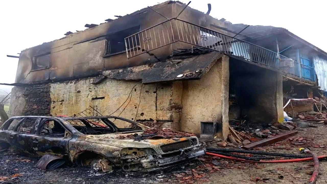 Söndürme çalışmalarının ardından yapılan ilk incelemelerde binada ağır hasar meydana geldiği tespit edildi. Yangın nedeniyle iki katlı ev tamamen kül olurken evin yakınında park halinde bulunan iki araç da yanarak hurdaya döndü.