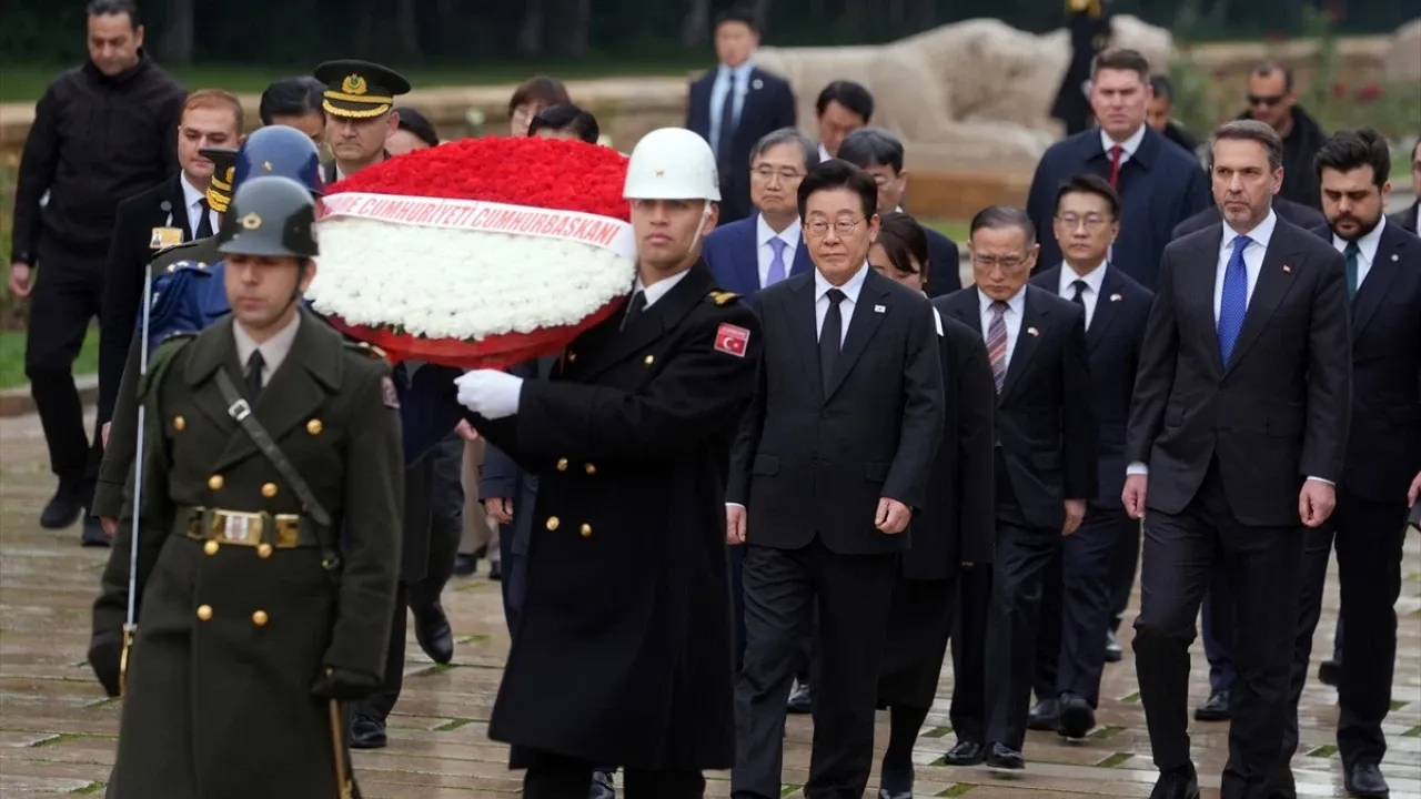 Resmi temaslarda bulunmak üzere Türkiye'de bulunan Güney Kore Devlet Başkanı Lee Jae Myung, programına Anıtkabir ziyaretiyle başladı. Enerji ve Tabii Kaynaklar Bakanı Alparslan Bayraktar'ın da yer aldığı resmi heyetle birlikte Büyük Önder Gazi Mustafa Kemal Atatürk'ün mozolesine çelenk bırakan Lee, iki ülke arasındaki "kan bağı" vurgusunu Özel Defter'e kaydetti.