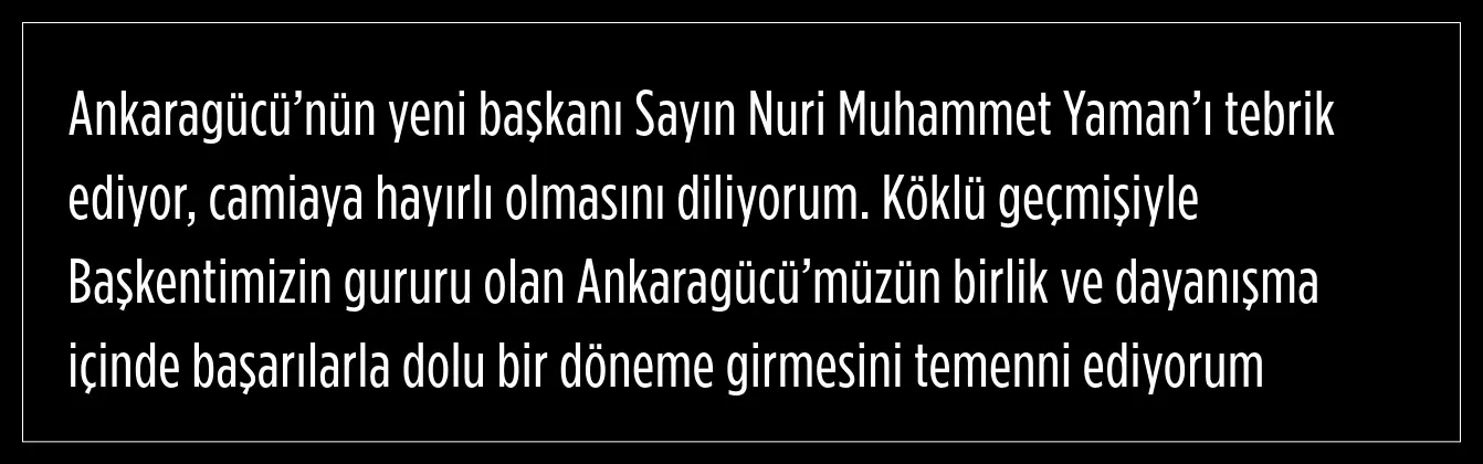 Sosyal medya hesabı üzerinden bir paylaşım yapan Mansur Yavaş, Ankaragücü camiasına hayırlı olmasını dilediğini ifade etti .