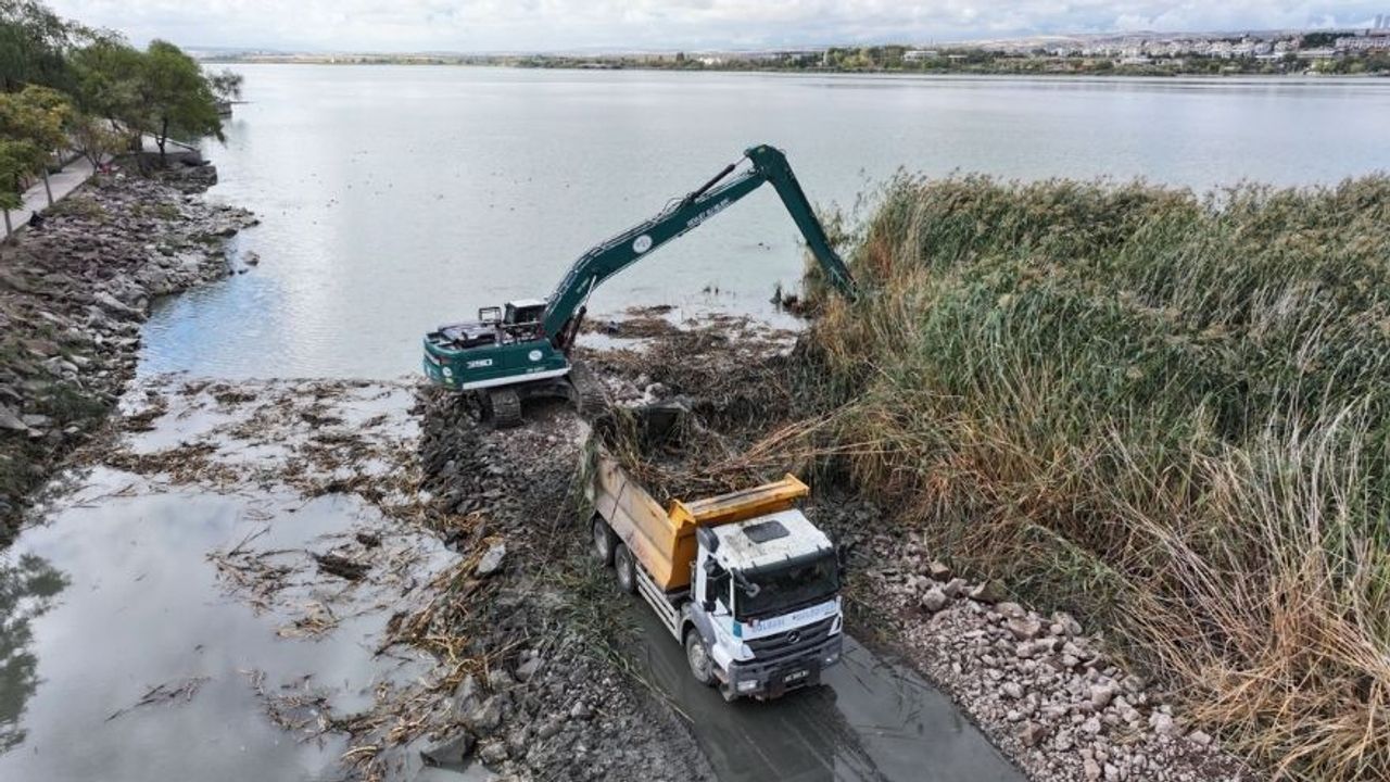 Gölbaşı Belediyesi, Çevre, Şehircilik ve İklim Değişikliği Bakanlığı Tabiat Varlıklarını Koruma Genel Müdürlüğü ve Devlet Su İşleri (DSİ) iş birliğiyle yürütülen çalışmalarda, göl tabanında birikmiş çamur, plastik, metal ve organik atıklar tamamen temizleniyor.